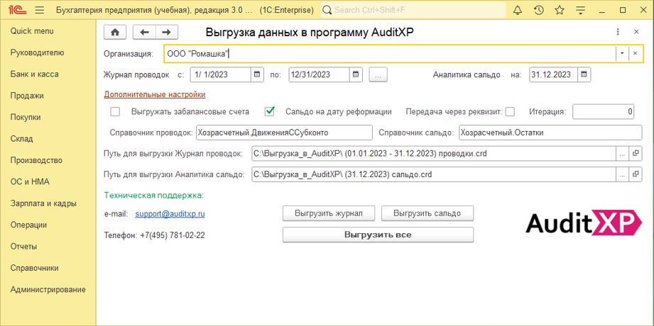 Обработки распространяются свободно и их можно получить с сайта AuditXP.ru в разделе «Скачать» или из самой программы, нажав кнопку «Скачать выгрузки для 1С». В комплекте с обработками идет подробная инструкция по их использованию.