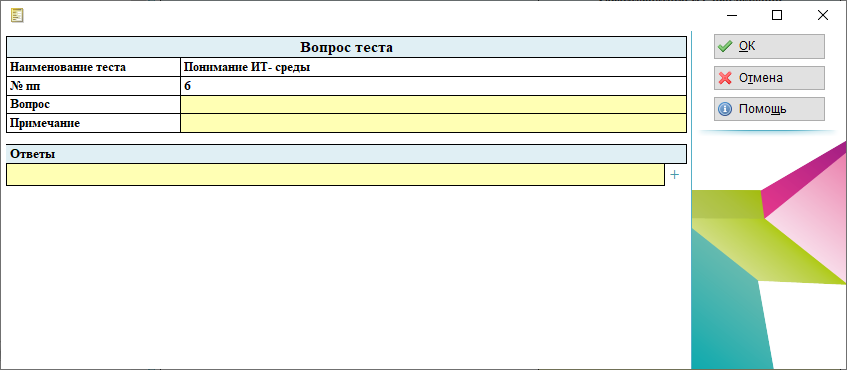 Поля, выделенные желтым цветом, доступны для изменения и ручного ввода информации. Поле «Ответ» предназначено для заполнения ответа в свободной форме, который будет автоматически отображаться при нажатии кнопки «Заполнить» в колонке «Характеристики ИТ-приложений».